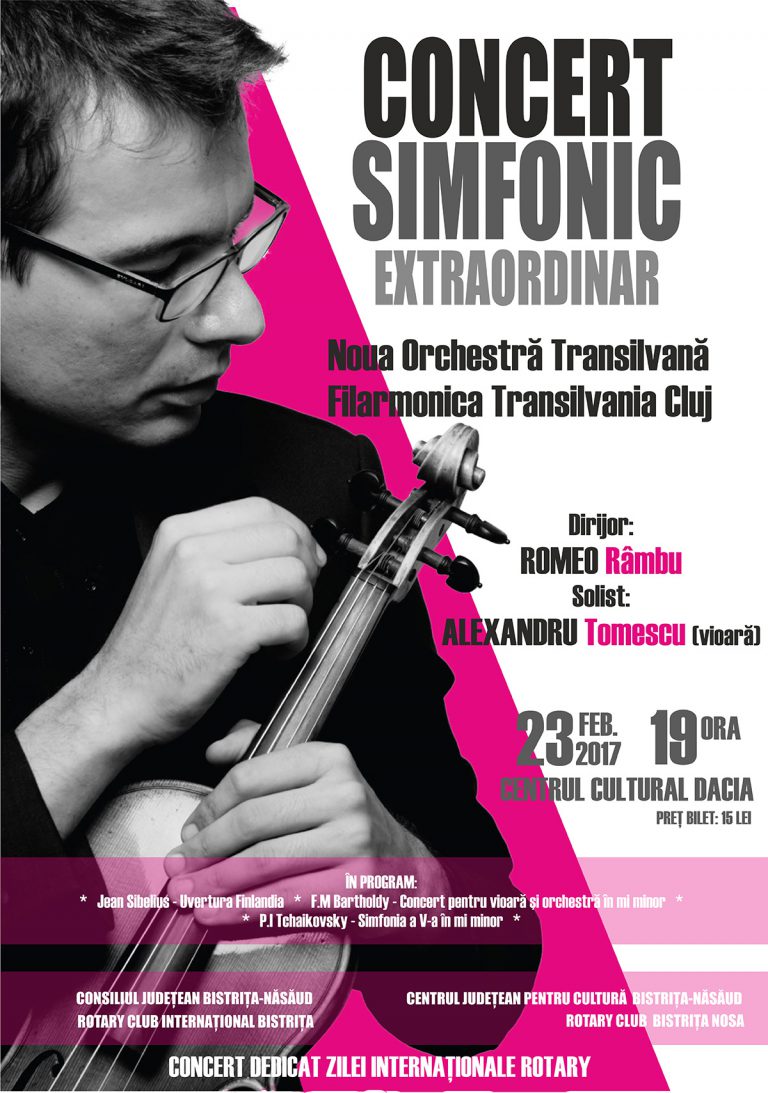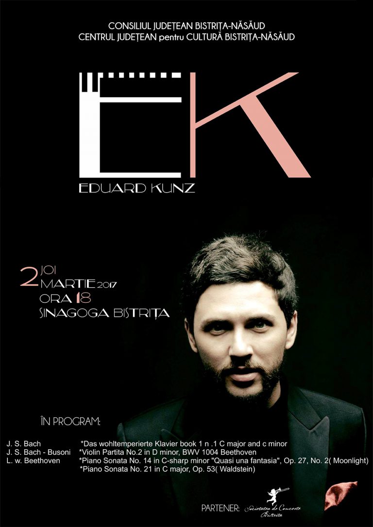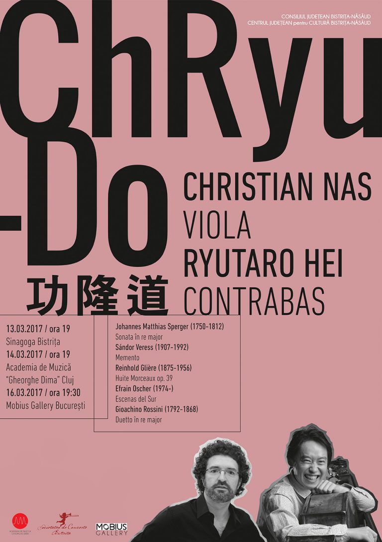 CONSILIUL JUDEȚEAN BISTRIȚA-NĂSĂUDCENTRUL JUDEȚEAN pentru CULTURĂ BISTRIȚA-NĂSĂUD prezintă Recital extraordinar susținut de ChRyu-Do Christian Naș (Germania)- ViolăRyutaro Hei (Japonia) – Contrabas 13 martie 2017, ora 19 la Sinagoga Bistrița În program: Johannes Matthias Sperger (1750-1812) Sonata în re major Sandor Veress…