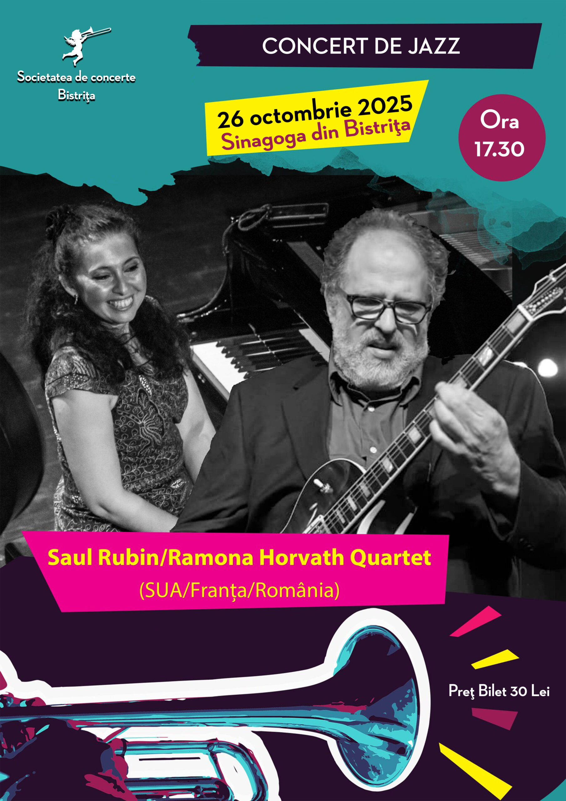 Societatea de Concerte Bistrița vă invită duminică 26 octombrie 2025, ora 17:30, la Sinagoga Bistrița