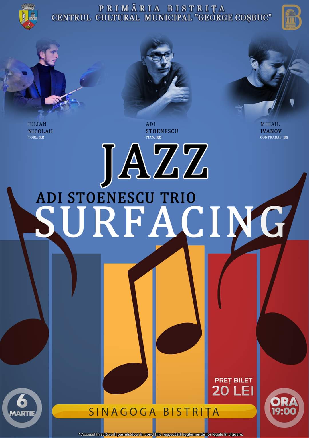 Adi Stoenescu Trio este numele sub care pianistul Adi Stoenescu explorează alături de instrumentiști variați un peisaj în schimbare al jazz-ului contemporan. Formula actuală, cu Mihail Ivanov la contrabas și Iulian Nicolau la tobe, se organizează în jurul unor compoziții în primă audiție, la care se adaugă cele incluse pe albumul Waking Light al Adi Stoenescu Group, lansat la final de noiembrie 2021.Compozițiile propuse în format de trio sunt un prilej pentru interplay, o muzică cu forme mai libere, care se dezvoltă pe moment, ca o conversație între prieteni. O dovadă a puterii jazz-ului de a aduce împreună instrumentiști din țări și contexte muzicale diferite, Adi Stoenescu Trio propune un sound deschis la influențe și interpretări, care se construiește de fiecare dată altfel în dialogul de pe scenă.