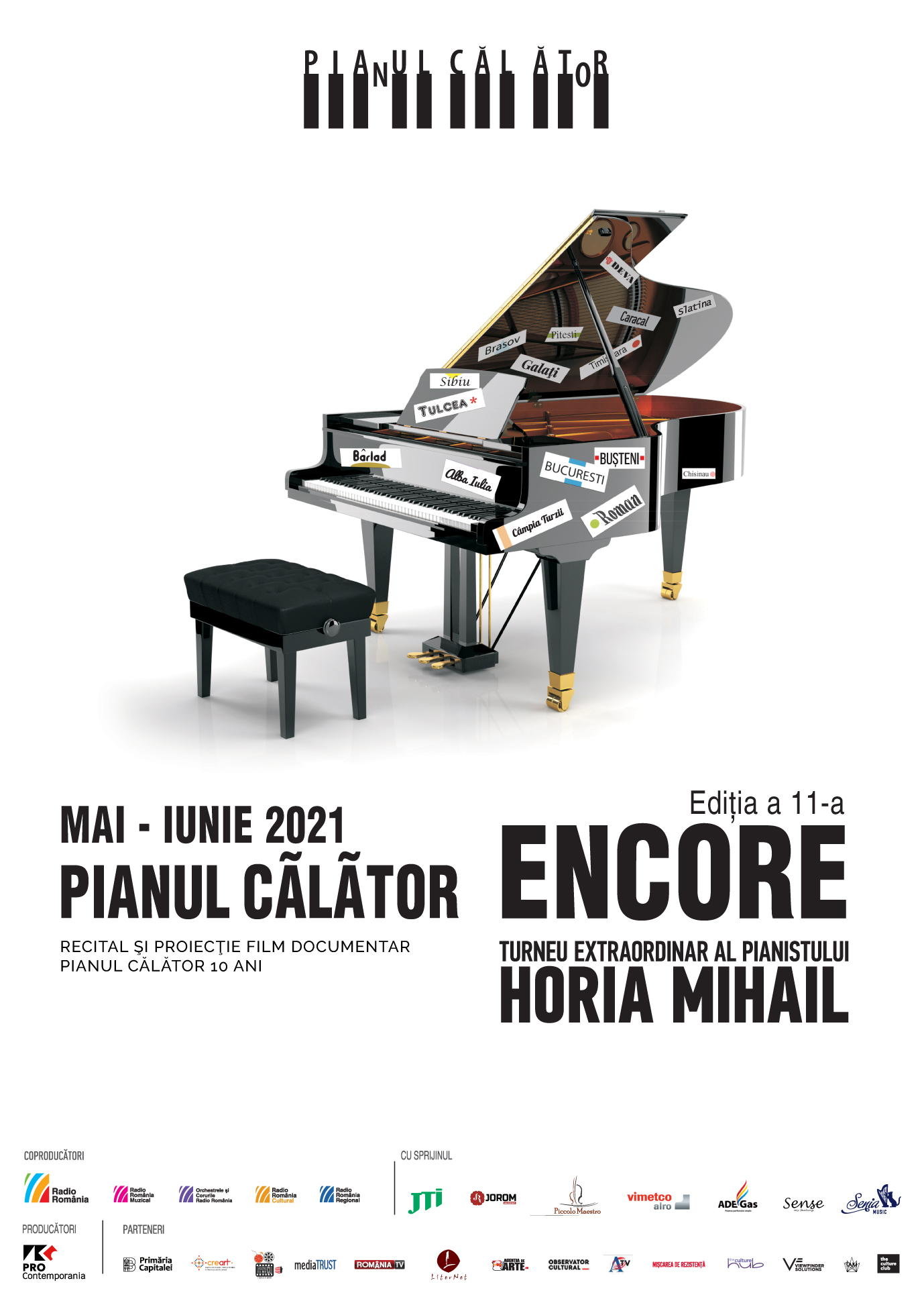 În cadrul unui proiect cuprinzând 13 concerte, susţinute în 11 oraşe din România şi la Chişinău, Turneul Pianul călător – Encore susţinut de pianistul Horia Mihail ajunge pe 22 iunie, ora 20.30 la Bucureşti la Grădina cu Filme – Cinema & More (CREART), unde va avea loc un recital în aer liber urmat de proiecţia filmului Pianul călător – 10 ani. Ultimele concerte sunt programate pe 26 iunie, ora 19 la Muzeul Principia din Alba Iulia şi pe 27 iunie, ora 19 la Sinagoga din Bistriţa.